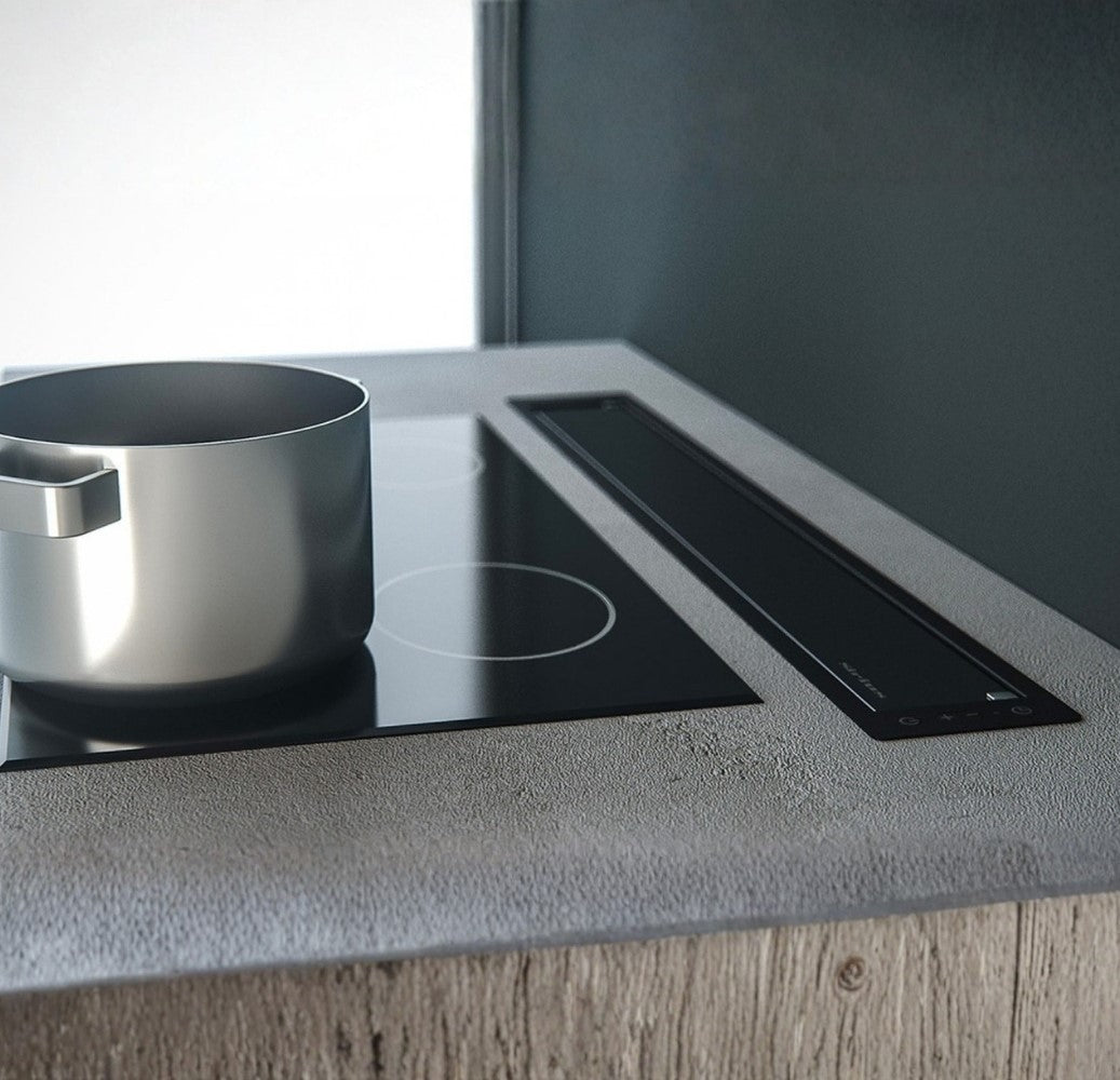 Powerful extraction as well as unobstructed views over an island bench, our Le Luce Range is this stunning downdraft rangehood that's Hand-Crafted in Italy, and designed for Australian living. This contemporary solution allows you to hide the appliance under the kitchen bench and, when needed, extend it up from the benchtop. With a sleek, flush installation and designer lighting, the downdraft is sure to be the talking point of the kitchen and is perfect for the open-plan kitchen concept, as the seamless design offers the best use of space.